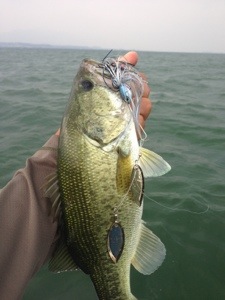 風が強くなってきて、スピナーベイトを巻くと・・ ディーパーレンジ3/4オンスにてレギュラーサイズ。