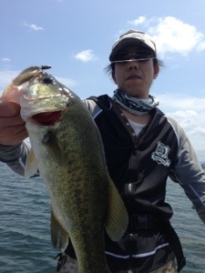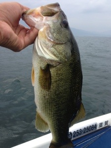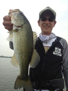 とりあえず、北湖のフローティングジャークベイトからスタートすると、すぐにグッドサイズがヒット〜!