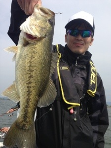 ゲストの服部さん、スワンプクローラーのネコリグにて、グッドコンディションな40UP〜 (^^)