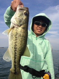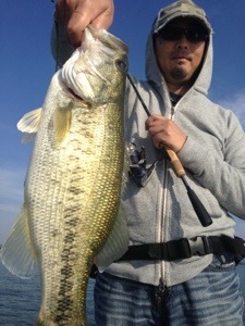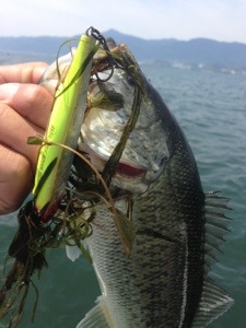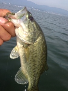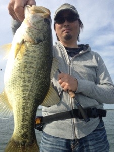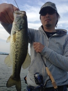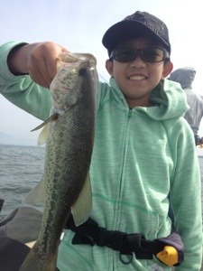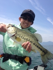 ゲストの陽君、パーティワームのスプリットショットにてグッドサイズ〜
