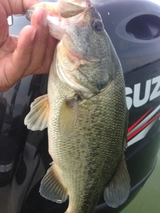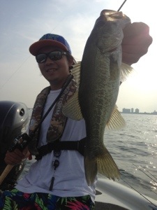 ここまでは良かったのですが、ここから激暑でバイトも少なく、さらにバイトがあってもスッポ抜け地獄 (>_<) やっぱり巻きでしょ⁈ と水温33℃オーバーのシャローを巻いていくと・・ モグラチャターにヒット〜 20160805-214635.jpg