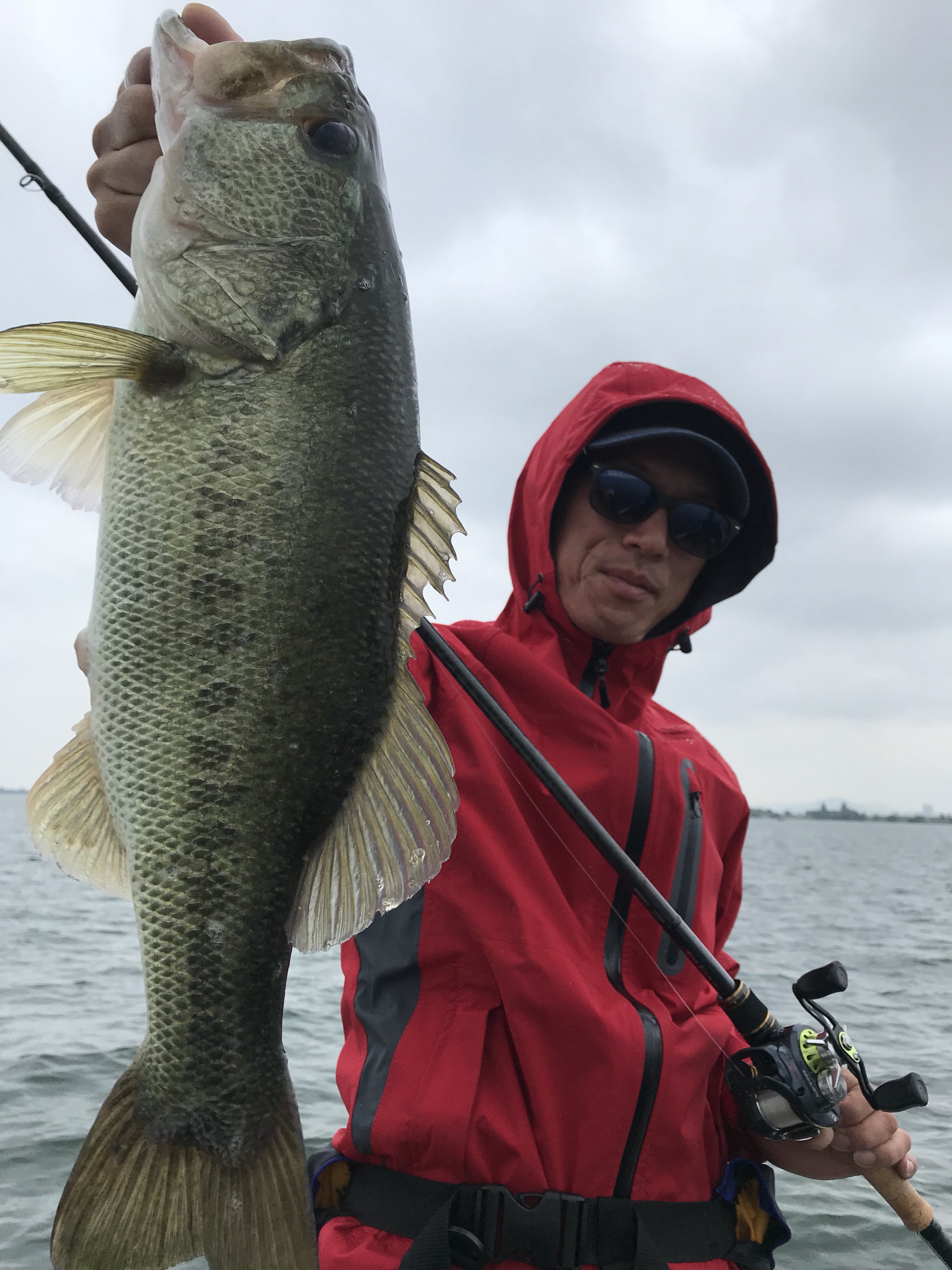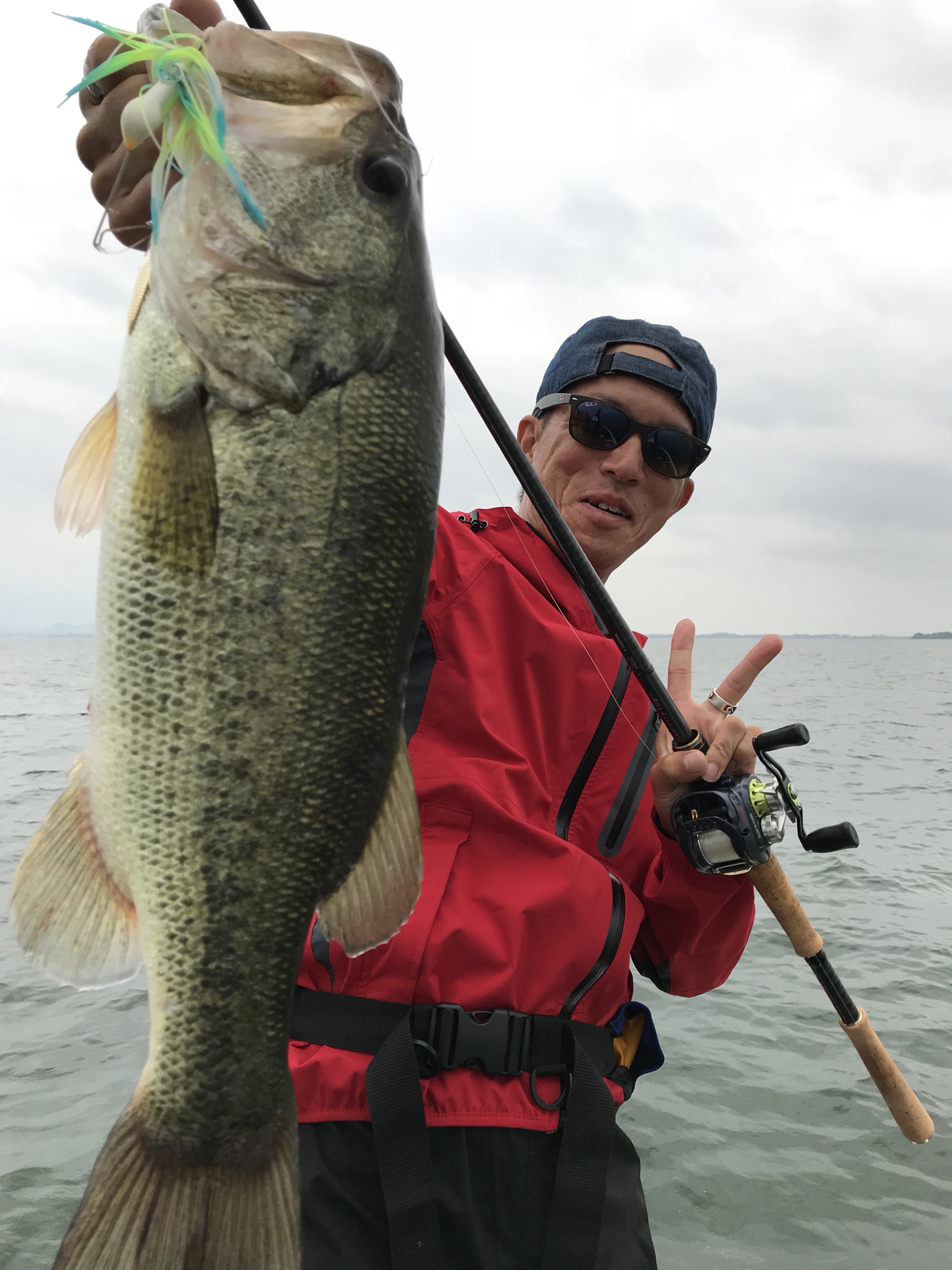 ゲストの土居さん、スパイロン3.8インチのテキサスにて53センチ〜♬