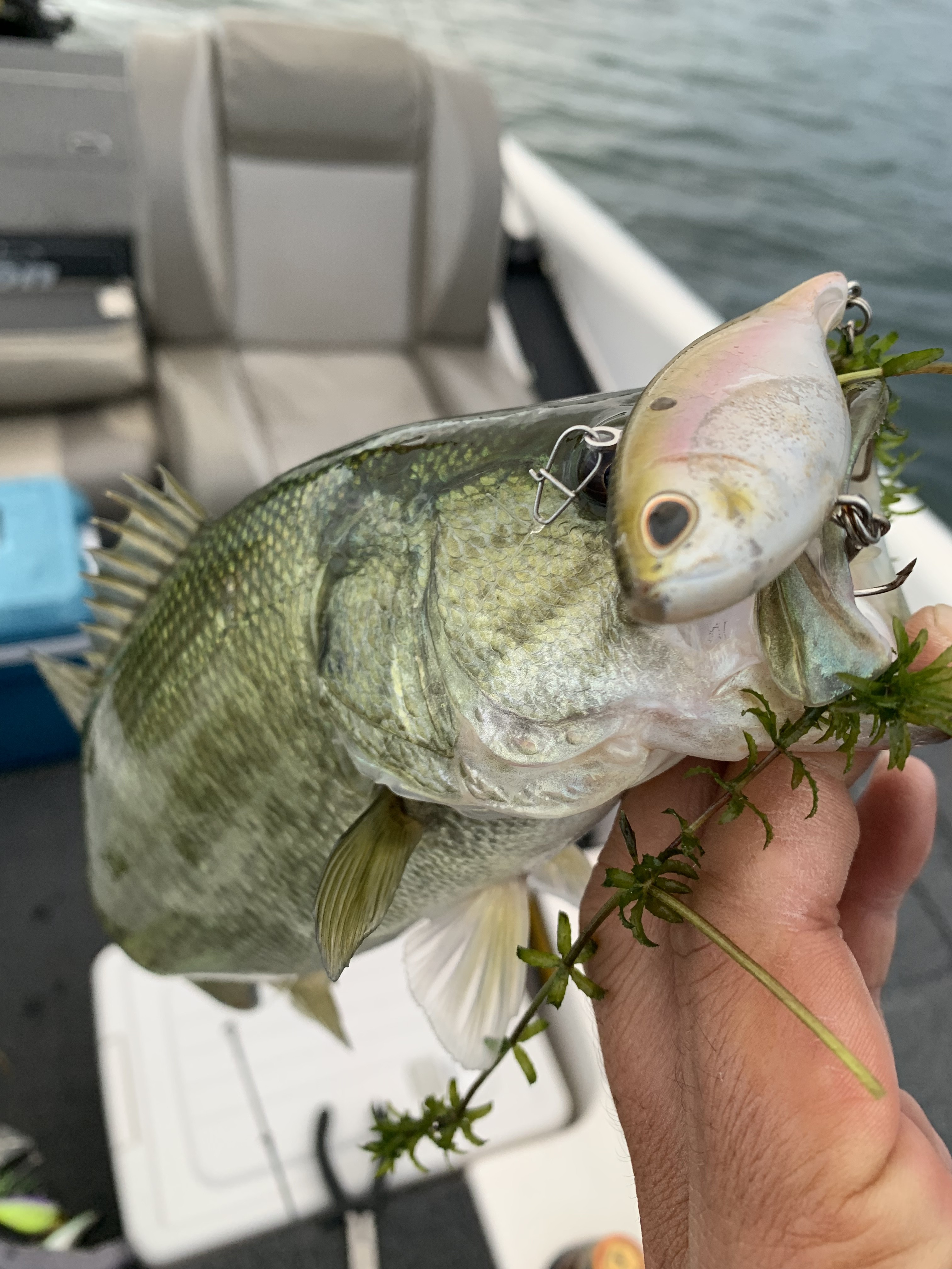 ジャンプをかわし、ボート際で見えた個体は3キロフィッシュ。しかし、スーパーパワーでラインブレイク(泣)